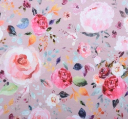 Úplet potisk malované květy na starorůžové, BIO