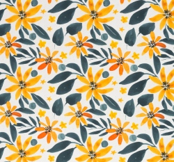 Úplet potisk žluté tropické květy s lístky na přírodní bílé