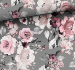 Úplet potisk rozkvetlé růže na šedé
