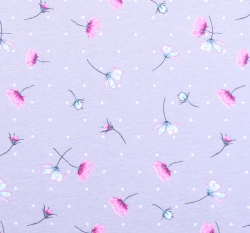 Bavlněný úplet rozházené kytičky a bílé puntíky na šedé