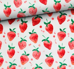 Úplet potisk sladké jahůdky na zaprášené bílé