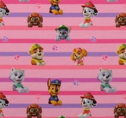Úplet potisk "vykukující" hrdinové z Tlapkové patroly na růžovo-fialových proužcích