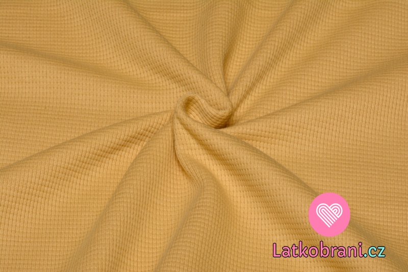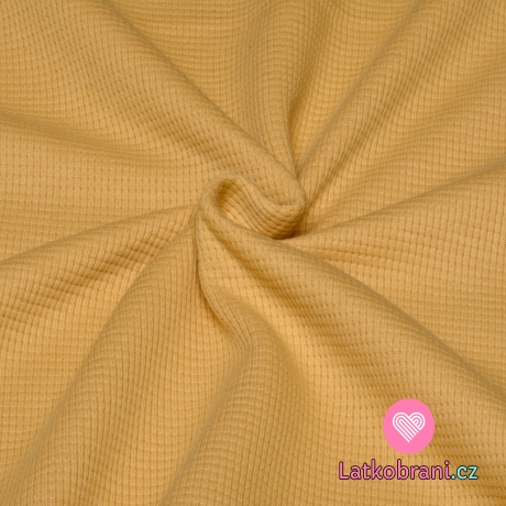 Bavlněný vaflový úplet jednobarevný žlutý hořčicový