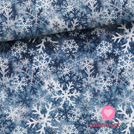 Teplákovina potisk sněhové vločky na modré