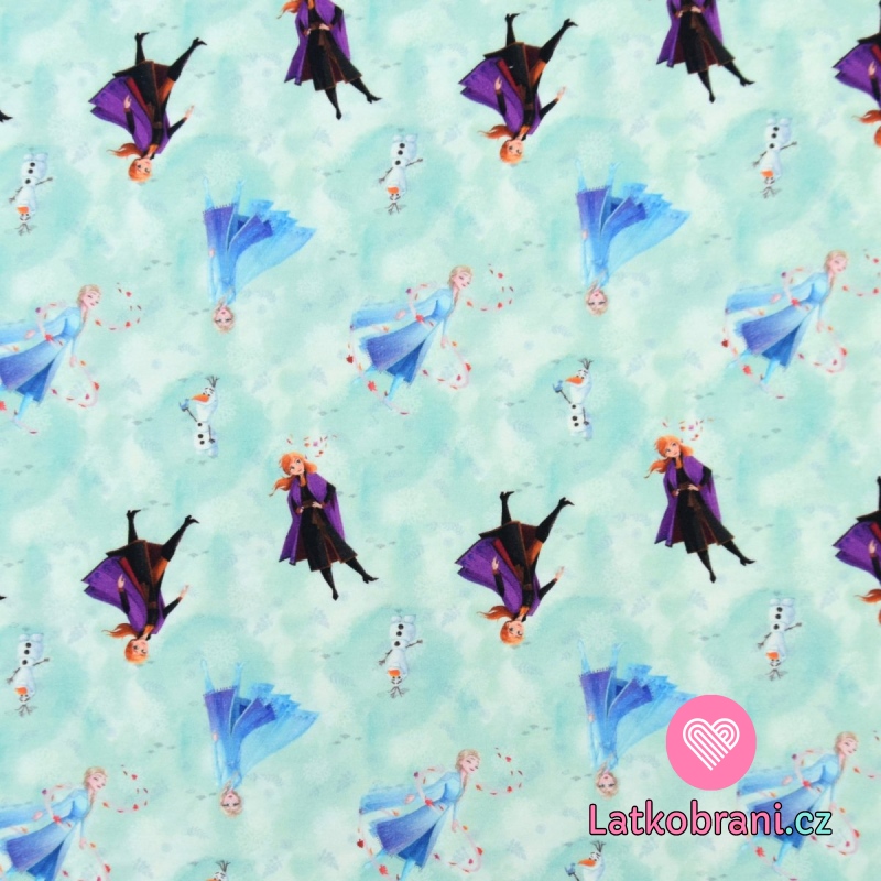 Teplákovina potisk Ledové království - Elsa a Anna na zelené mintové