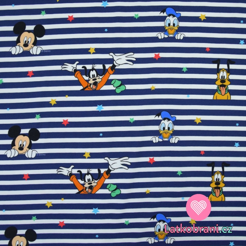 Úplet potisk Mickey a jeho kamarádi v pruzích na modré