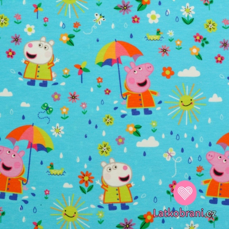 Úplet potisk Prasátko Peppa na modré