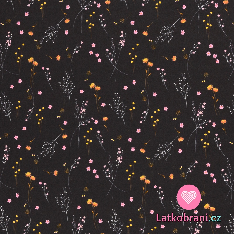 Softshell potisk jemné kvítí na černé s fleecem
