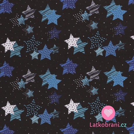 Softshell potisk modré hvězdy na černé s fleecem