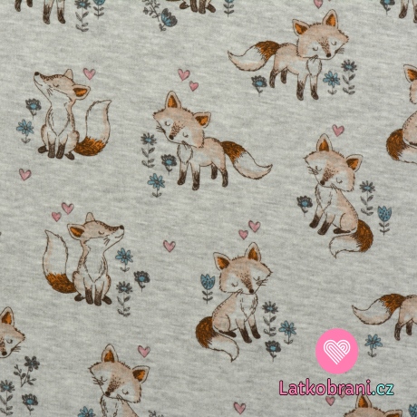 Warmkeeper lištička s kvítky a srdíčky na šedém melé