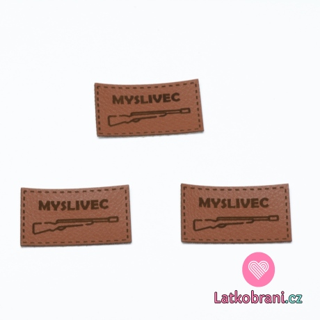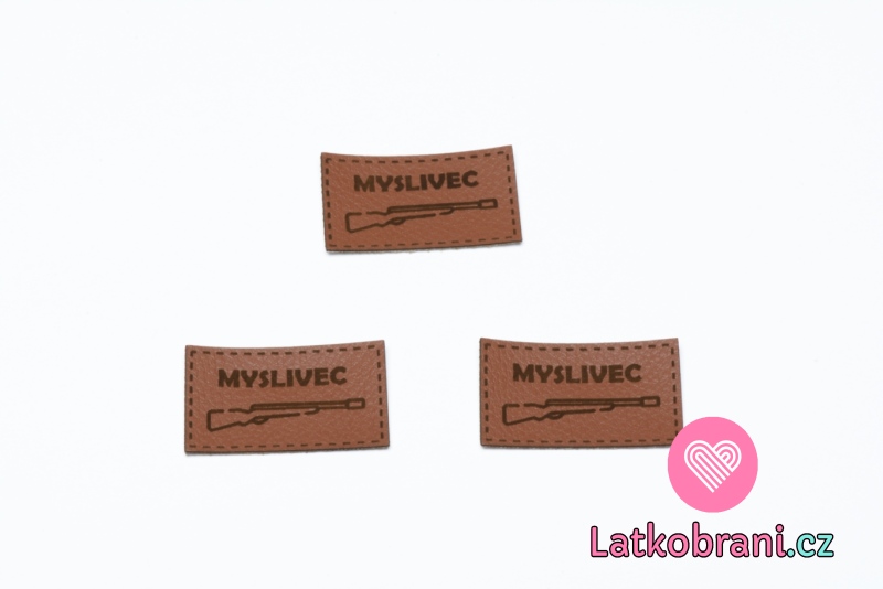 Štítek na oblečení "myslivec", koženkový, imitace kůže