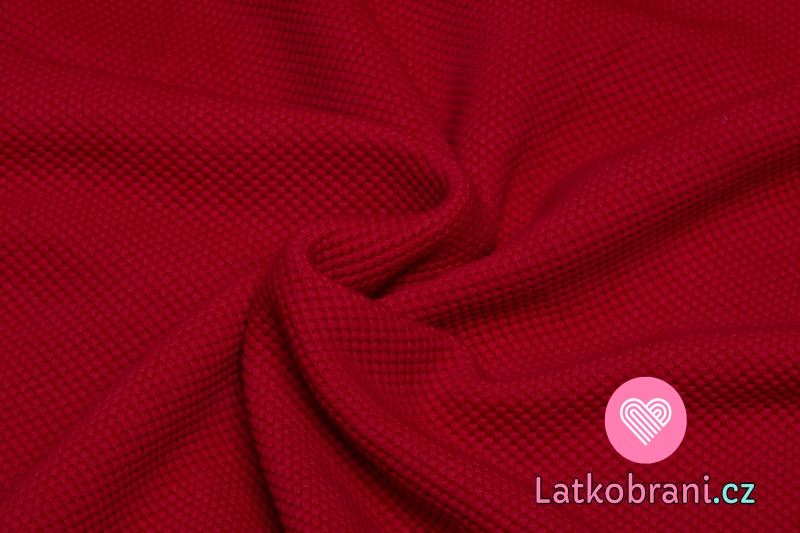 Jednobarevná teplákovina bublinky červená, 3D struktura