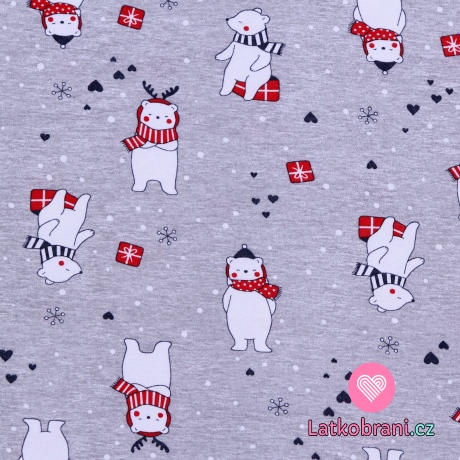 Bavlněný jednolícní úplet lední medvídci na šedé