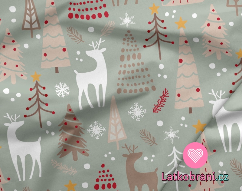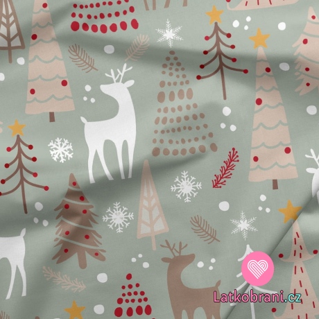 Úplet potisk srnečci mezi vánočními stromečky na zaprášené zelené