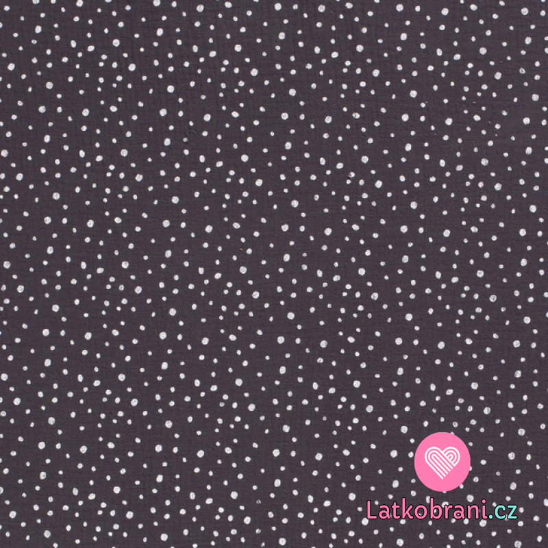Dvojitá gázovina / mušelín nepravidelné puntíky na šedé tmavší