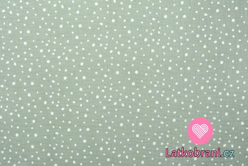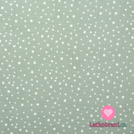 Dvojitá gázovina / mušelín nepravidelné puntíky na mintové světlejší