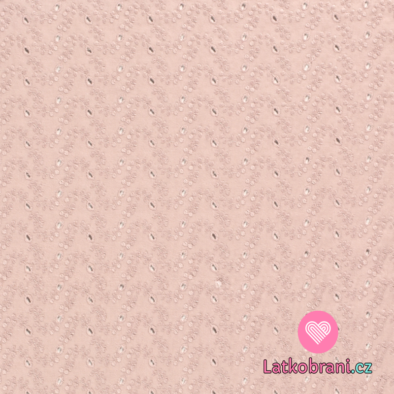 Bavlněná madeira růžová s dírkovanou výšivkou kytiček