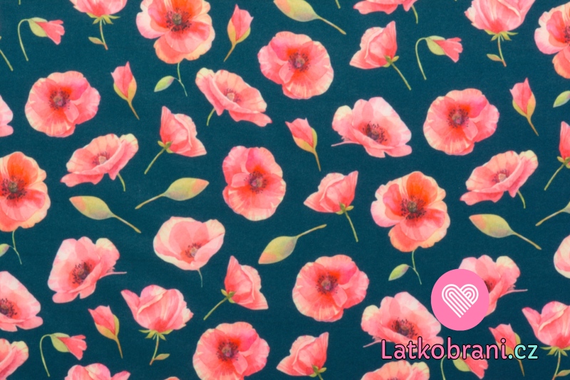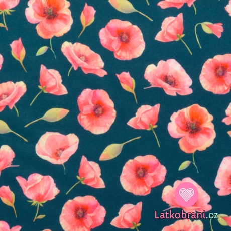 Pružný softshell potisk vlčí máky na modré, s fleecem
