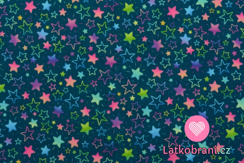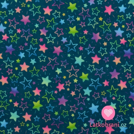 Pružný softshell barevné hvězdičky na petrolejové, s fleecem