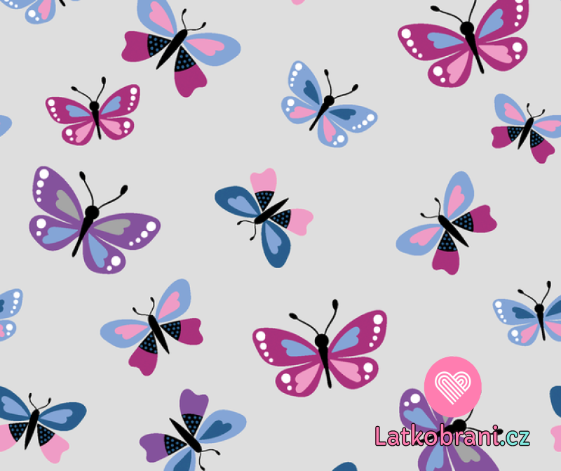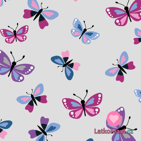 Úplet potisk motýlci na šedé