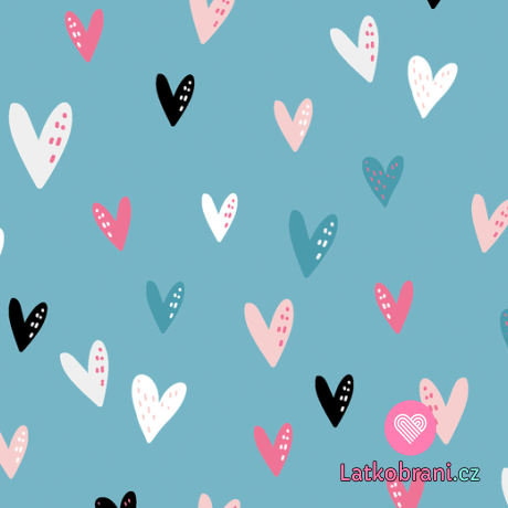Úplet potisk barevná srdíčka na modré