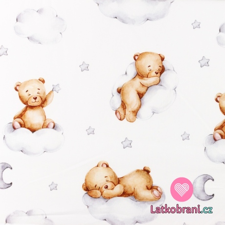 Bavlněný popelín potisk spící medvídek na bílé