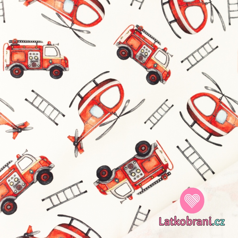 Teplákovina počesaná potisk hasičský vůz a vrtulník na bílé