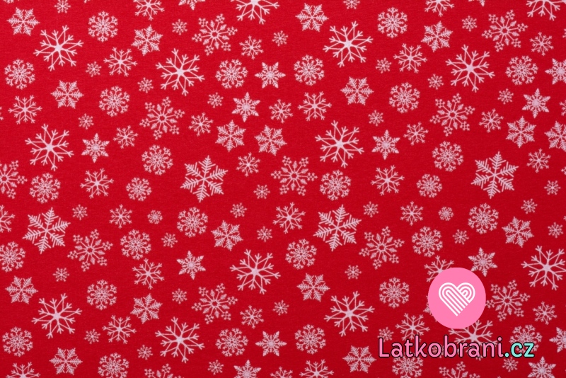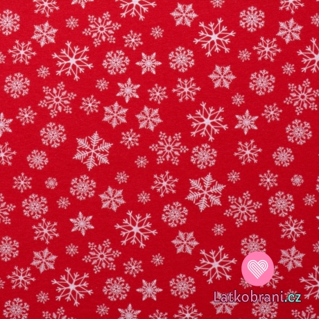 Teplákovina potisk sněhové vločky na červené