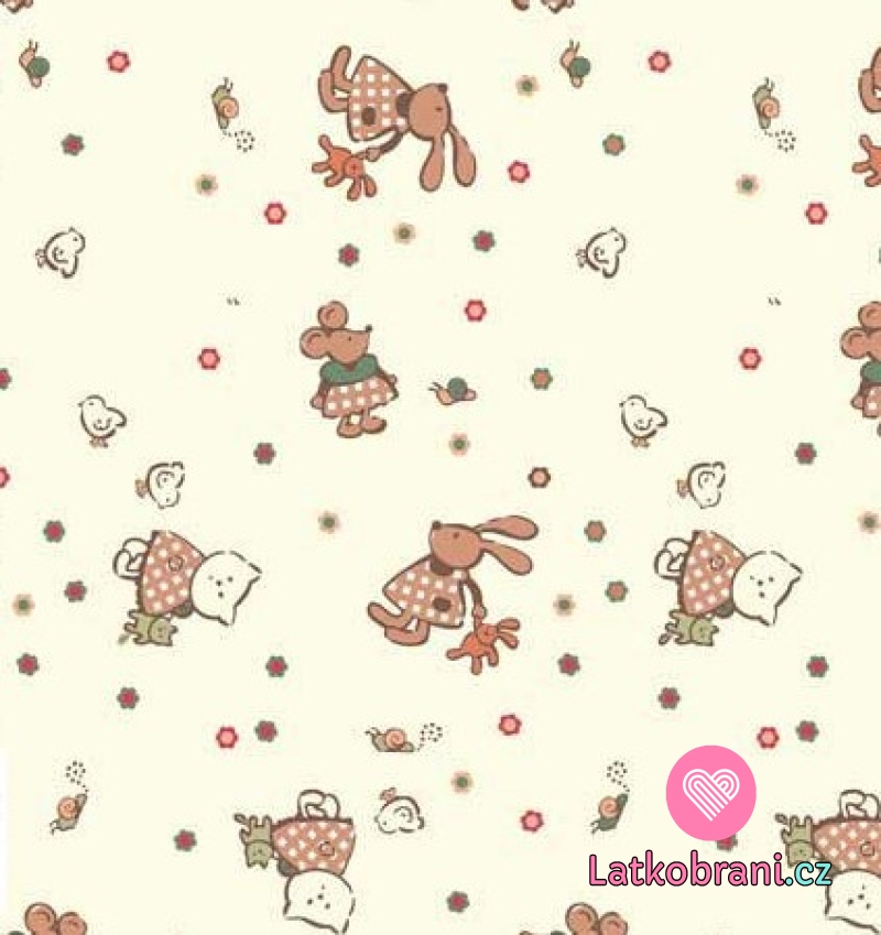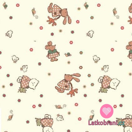 Úplet potisk kočičky, myšky a zajíčci na smetanovém podkladu