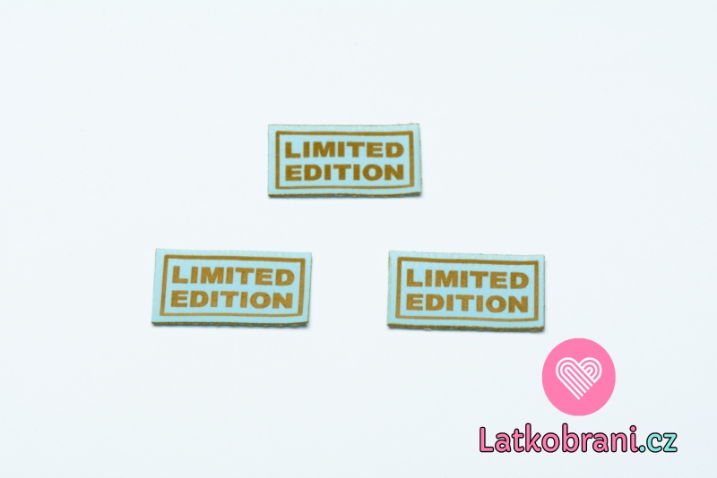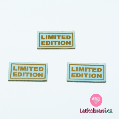 Štítek na oblečení "LIMITED EDITION", koženkový, imitace kůže, modrý
