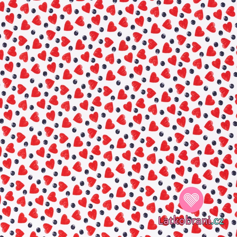Úplet potisk červená srdíčka mezi puntíky na bílé