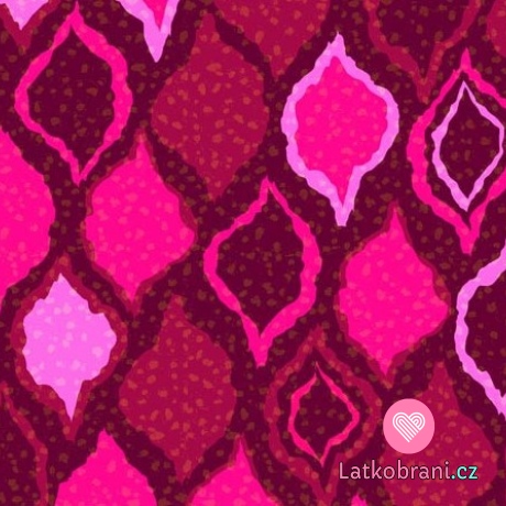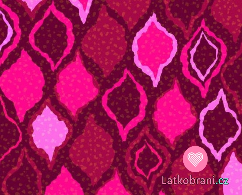 Úplet potisk růžové ornamenty na vínovém podkladu