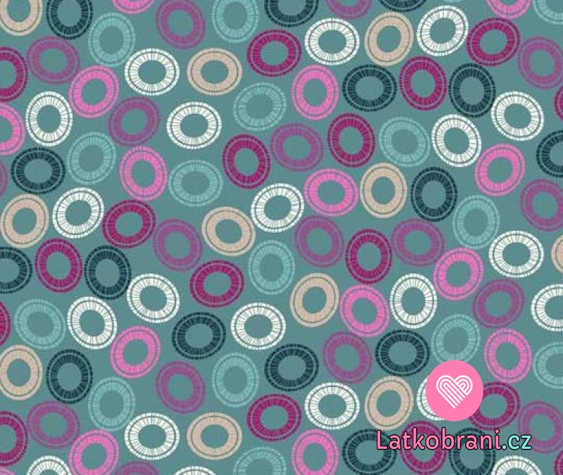 Úplet potisk barevné kroužky na zeleném podkladu