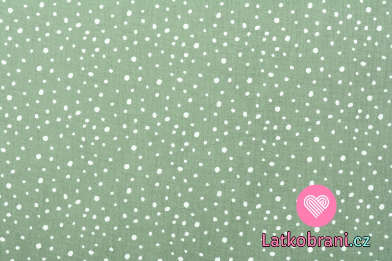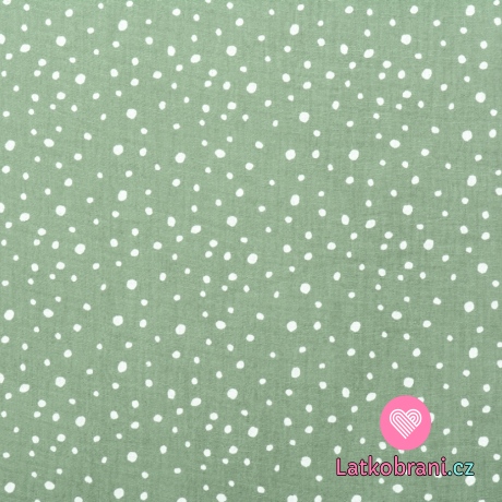 Dvojitá gázovina / mušelín potisk nepravidelné puntíky na starozelené