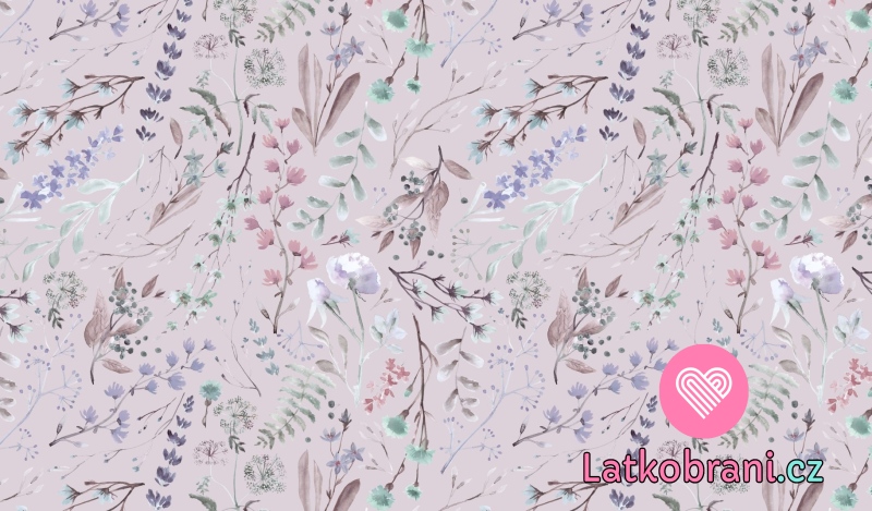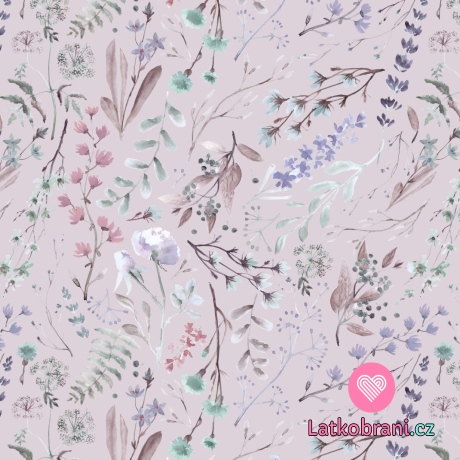 Úplet potisk luční kvítí na světlé šeříkové