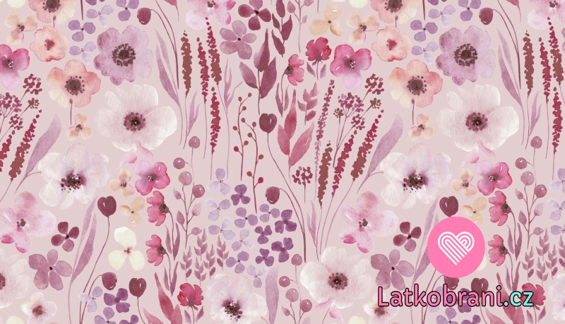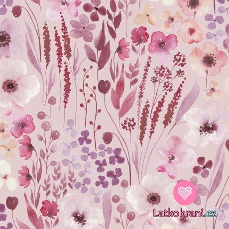 Úplet potisk akvarelové květiny na starorůžové
