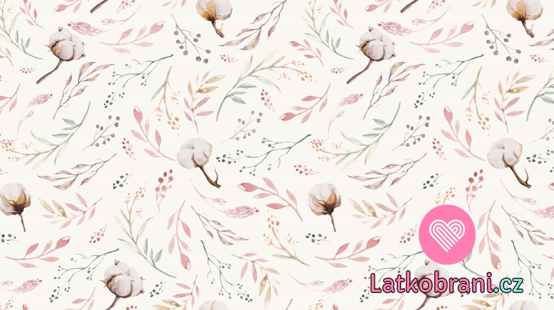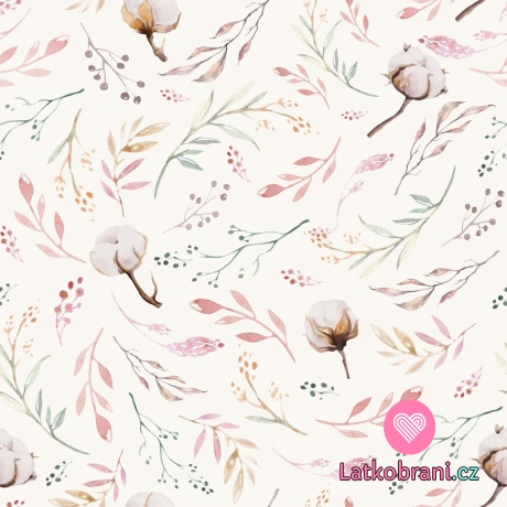Úplet potisk květy bavlníku na ecru