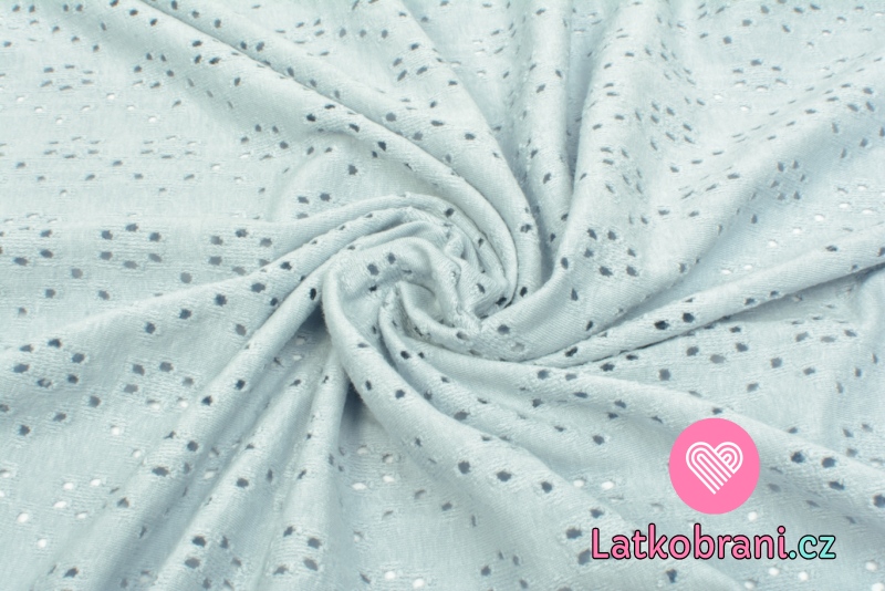 Úplet s dírkovanou výšivkou (madeira) jednobarevný modrý jeans