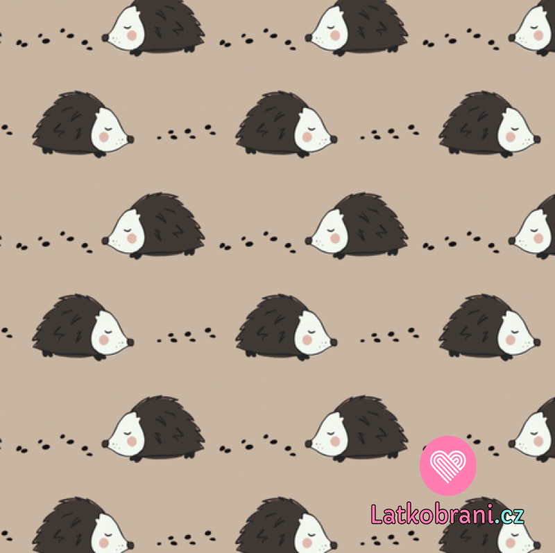Žebrovaný úplet potisk ježečci na béžové, BIO