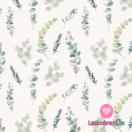 Viskózový úplet větvičky eukalyptu na ecru