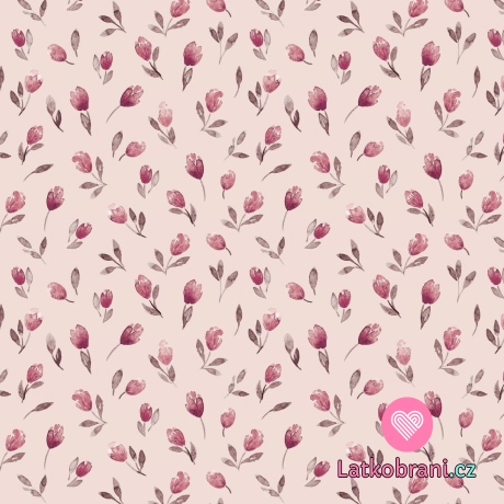 Úplet potisk malované tulipány na růžové