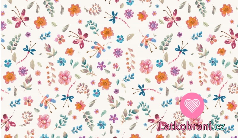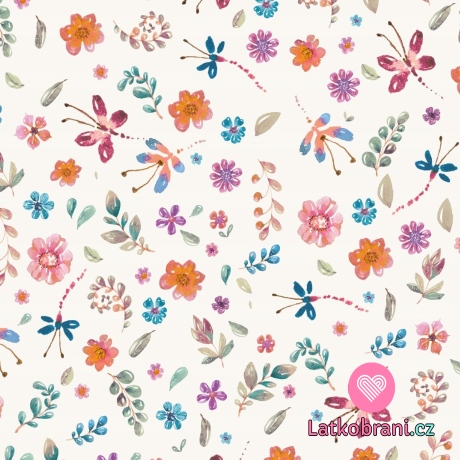 Úplet potisk malované květiny na ecru