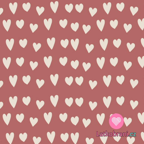 Žebrovaný úplet potisk srdíčka na starorůžové, BIO