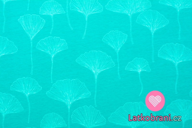 Úplet potisk listy ginko na tyrkysovém podkladu