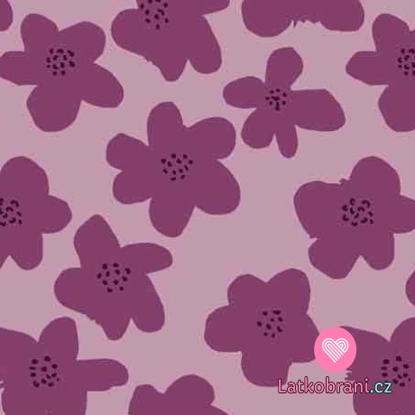 Teplákovina potisk růžové květy na světle růžové, lehce počesaná