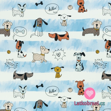 Úplet potisk pejsci na modro-bílých proužcích