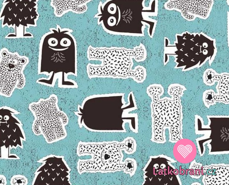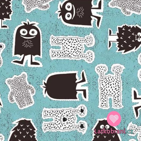 Teplákovina potisk příšerky na světle modré