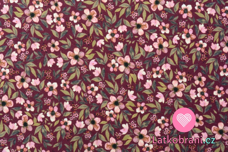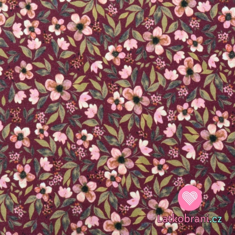 Úplet kytičky s lístky na tmavé bordó