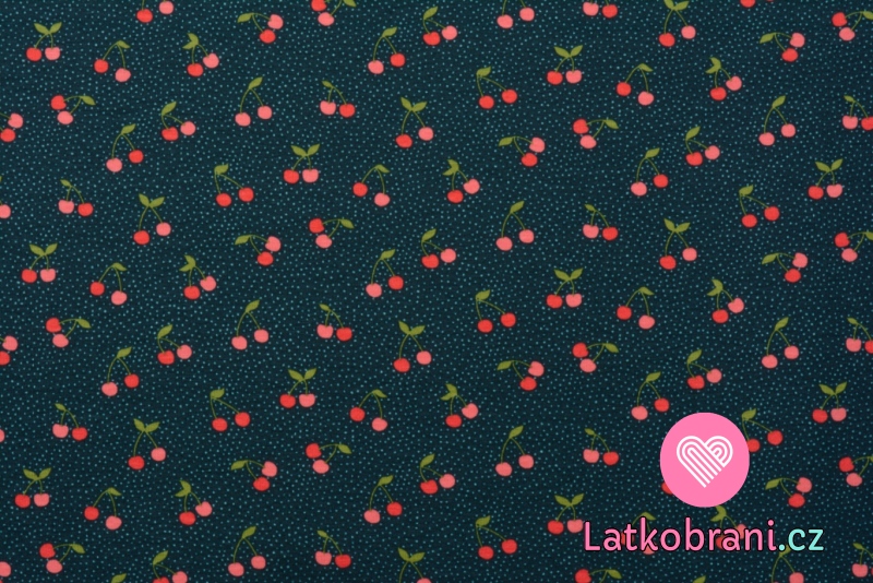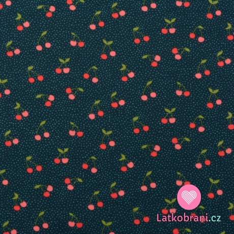 Úplet třešně s puntíčky na námořnické modré, BIO