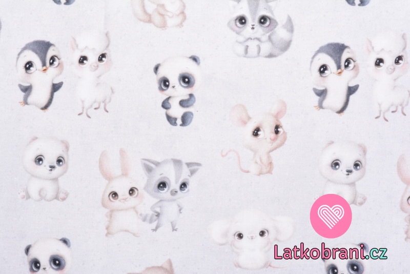 Bavlněné plátno roztomilá zvířátka na šedé